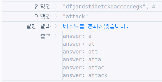 - 결과 동일: "pfqallllabwaoclk" -> ['p', 'f', 'q', 'a', 'l', 'l', 'l', 'l', 'a', 'b', 'w', 'a', 'o', 'c', 'l', 'k']