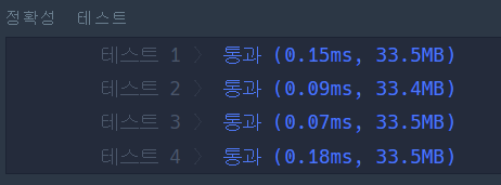 이 풀이가 더 이해 잘 되고 간단한 느낌이라 풀이를 수정했더니 실행 속도가 훨씬 개선되었다.
