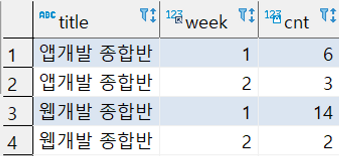 - 8월 1일 이후에 웹개발, 앱개발 종합반을 구매한 고객들의 week 별 체크인 수를 세어보기