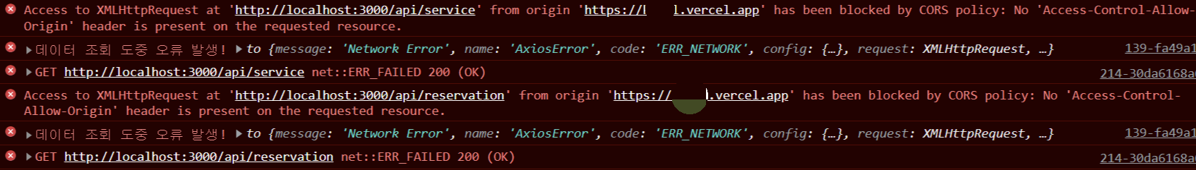 dev 환경에서는 아무 문제 없었는데 Vercel로 배포한 후에 데이터를 조회화면서 CORS 에러가 발생했다.