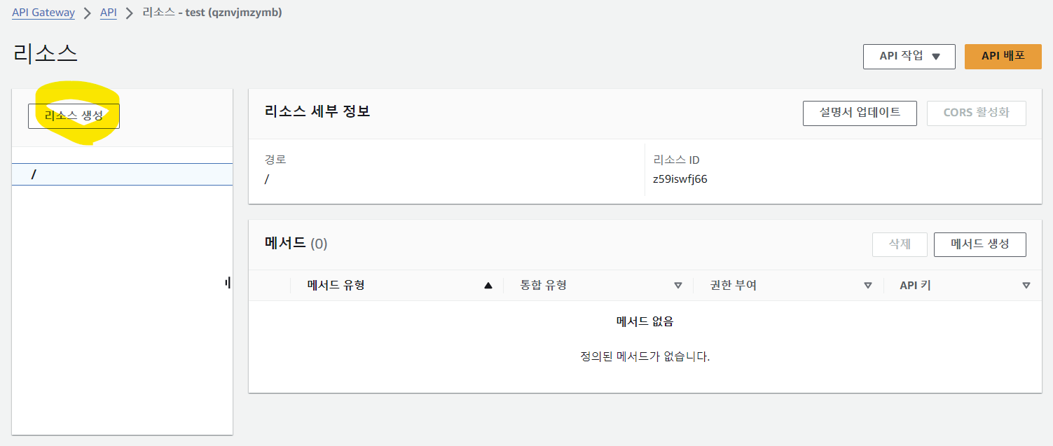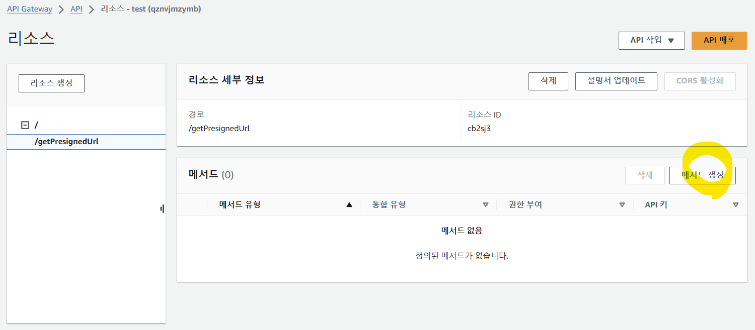 REST API 생성 (리소스 및 메서드 생성)