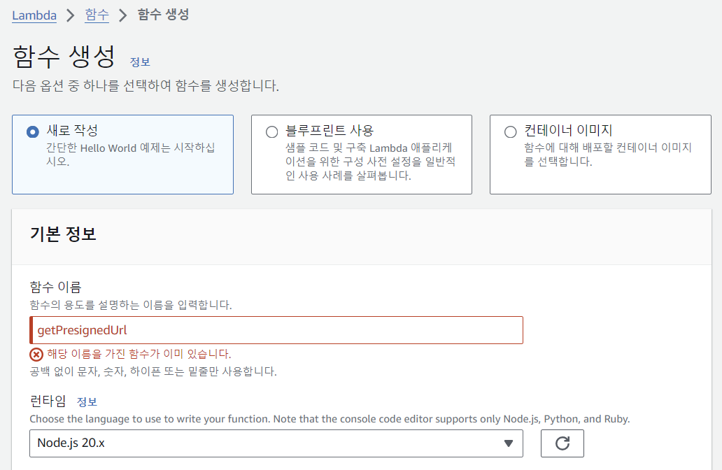 Lambda 함수 생성