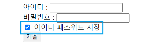 <label><input type="checkbox" id="checkbox"/> 아이디 패스워드 저장</label>