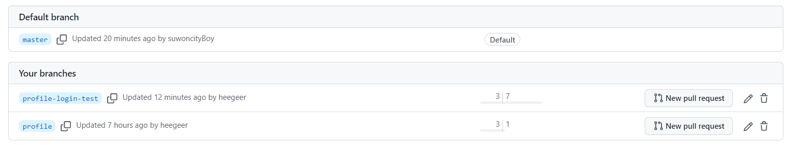 내 브랜치에서 진행 중인 프로필 페이지에 main 브랜치의 업데이트 사항을 merge하고 싶었다. 근데 merge는 처음이라 막연한 두려움을 가지고 있었기 때문에 main branch 건드릴까 봐 너무 무서웠다😱