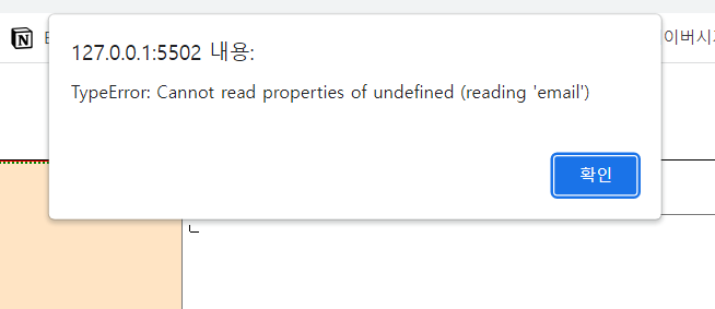 글 작성 버튼을 누르면 email 값이 없다고 뜨는데