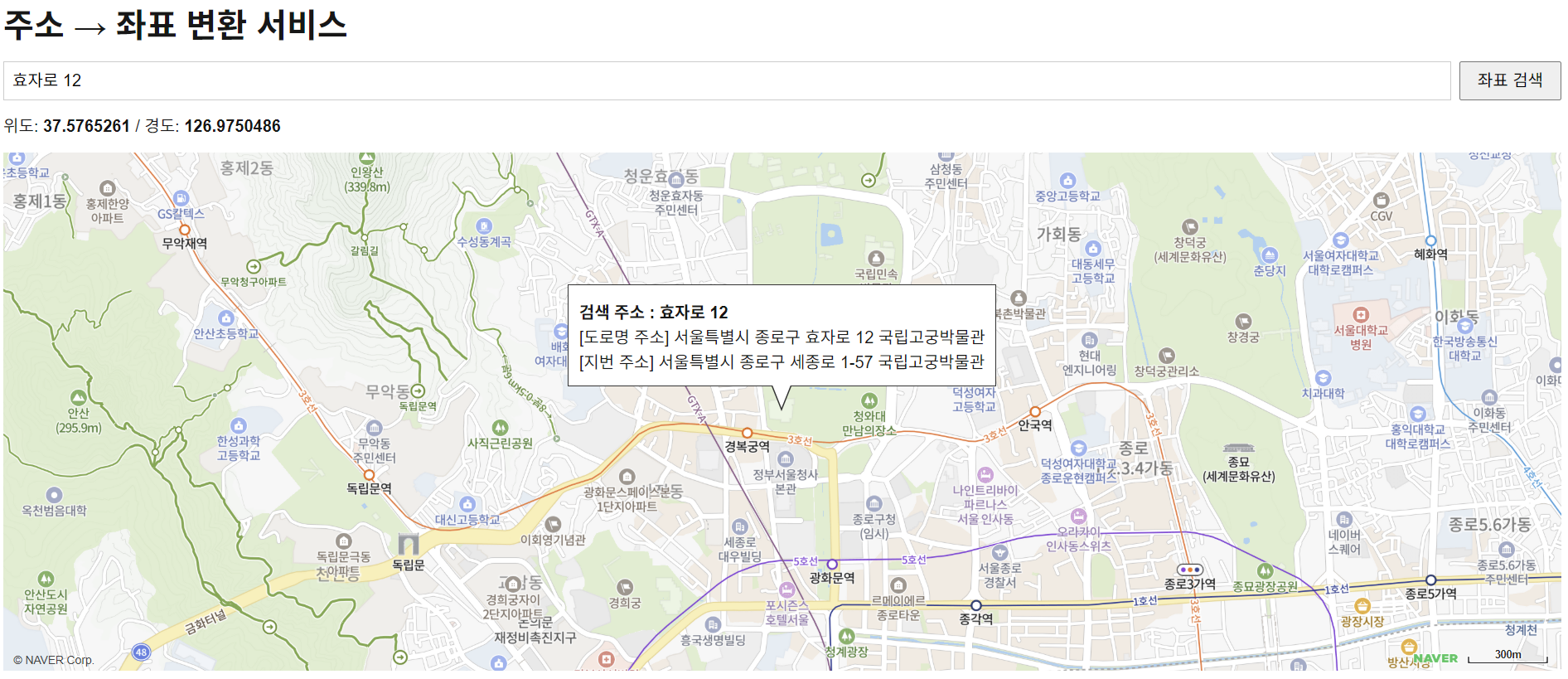 <h1 className={styles.title}>주소 → 좌표 변환 서비스</h1>
