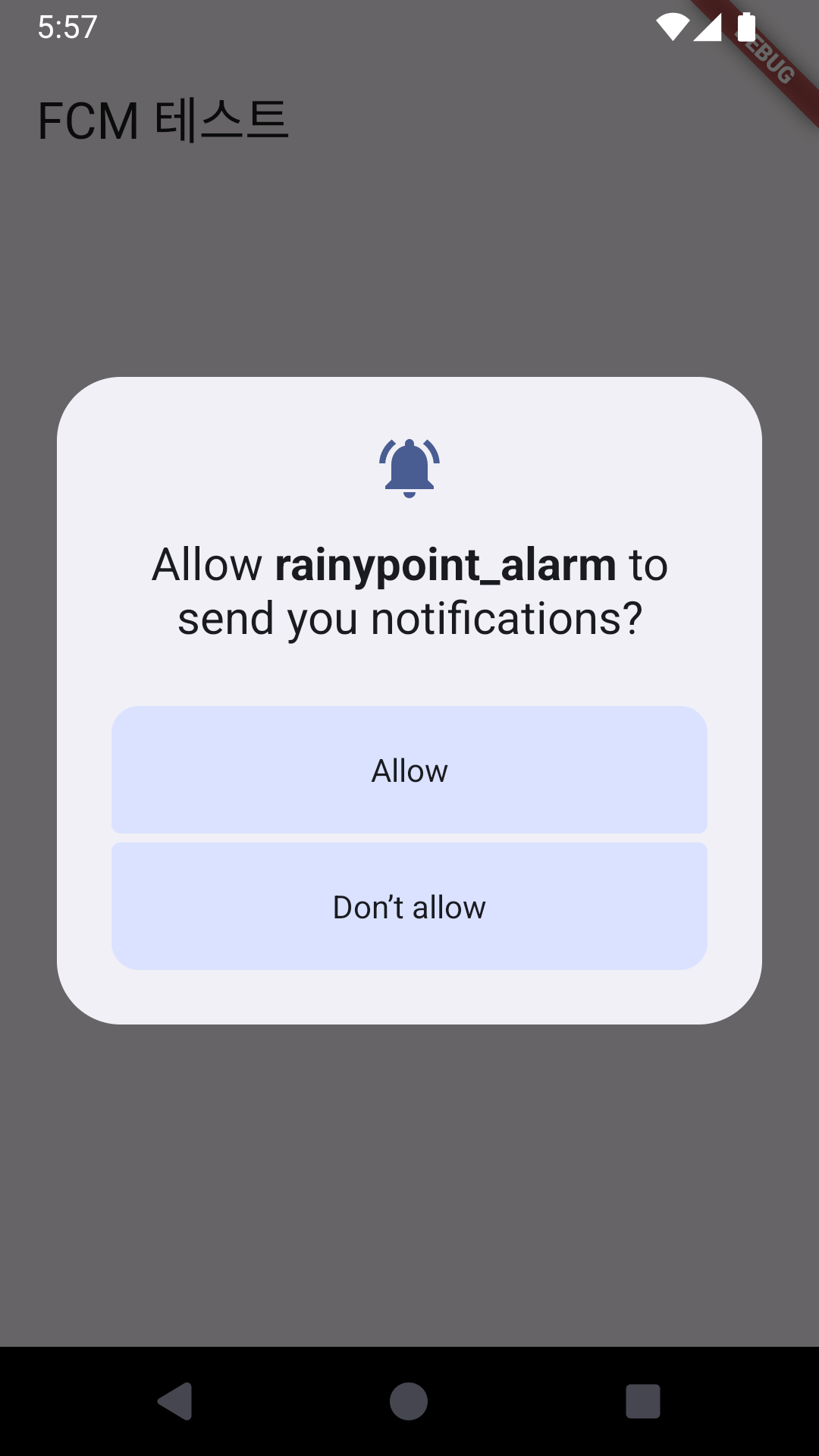 앱에 들어가면 자동으로 알림 수신 권한을 요청하는 다이얼로그가 뜬다.