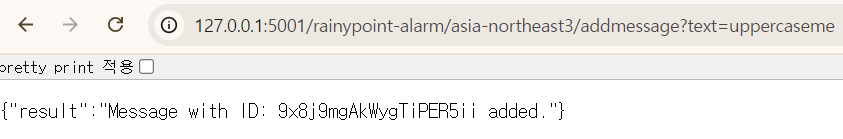`addmessage` 함수의 URL을 복사해서 끝에 `?text=uppercaseme`를 추가한 후