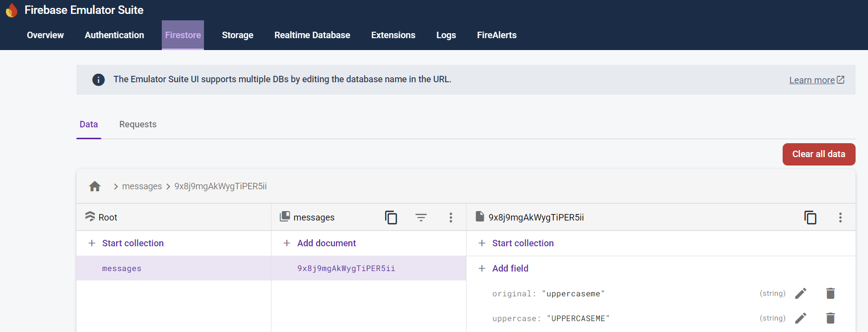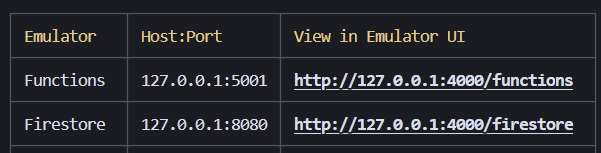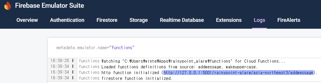 브라우저에 URL을 입력하여 Firebase Emulator Suite에 들어간다.