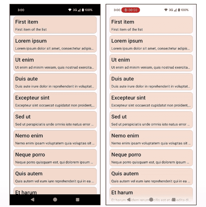 Flutter 앱이 Android SDK 버전 15를 타겟팅하는 경우, 앱이 자동으로 edge-to-edge 모드로 표시된다.