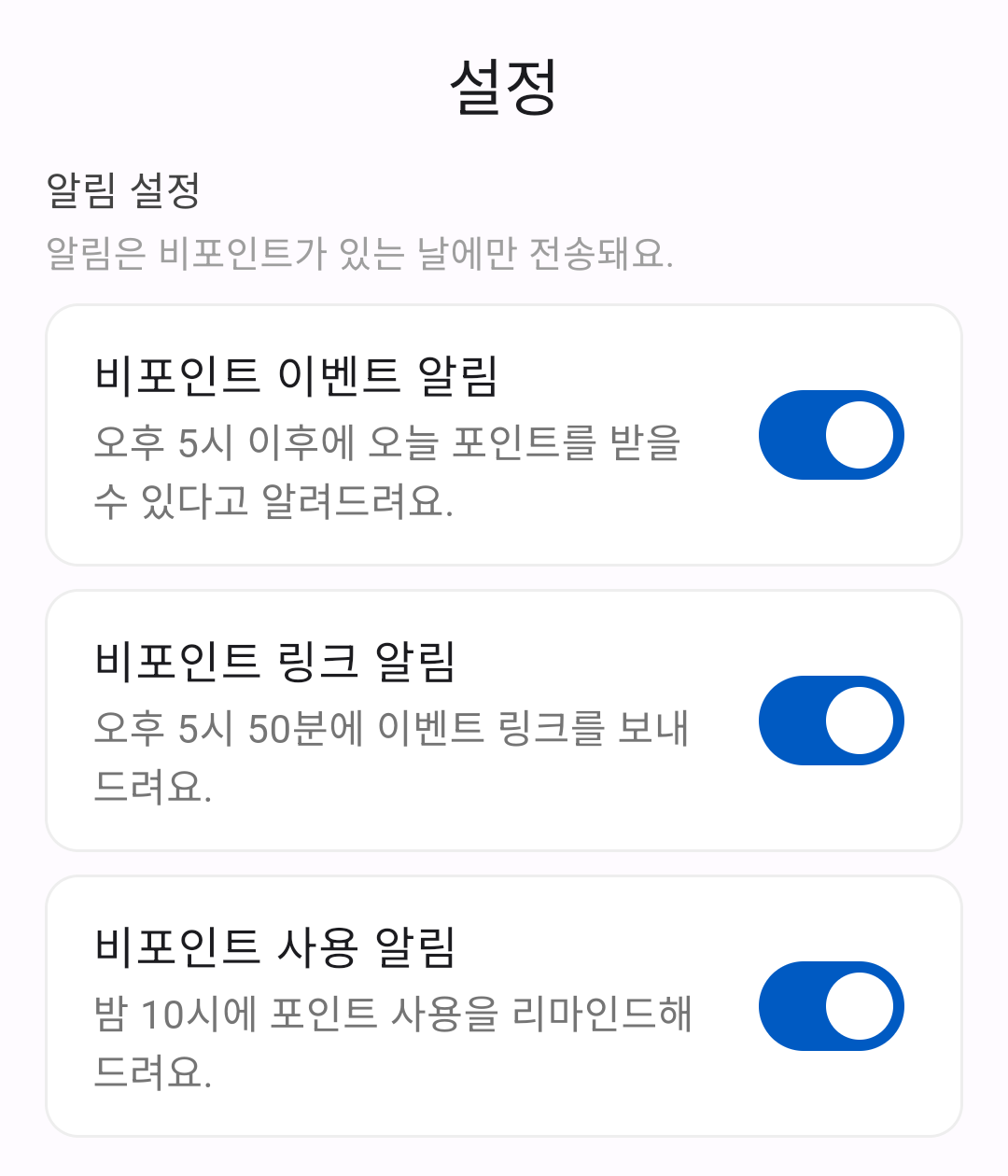 설정 화면에서 각각의 알림을 개별적으로 On/Off 할 수 있도록 구현해 보았다.