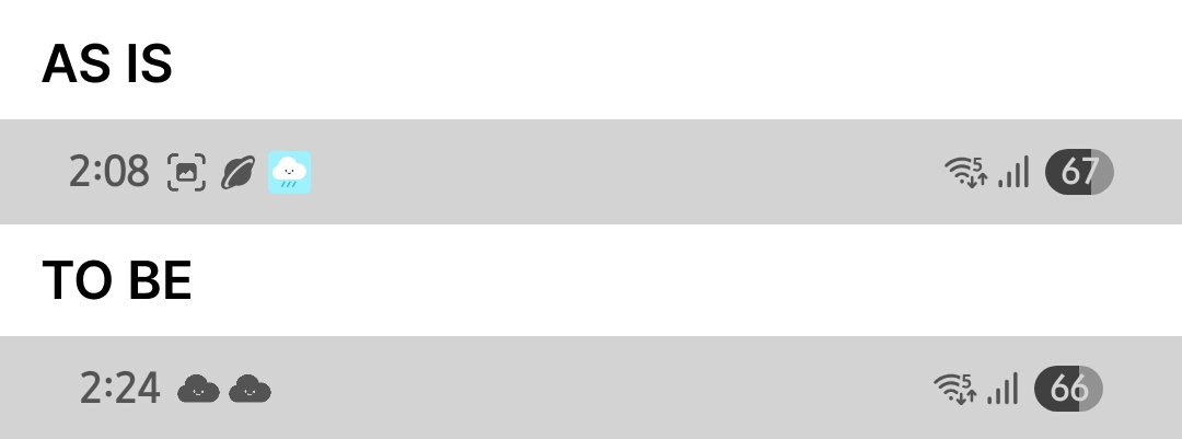 알림 아이콘은 상단바에서는 기본적으로 모두 회색으로 보이지만,
